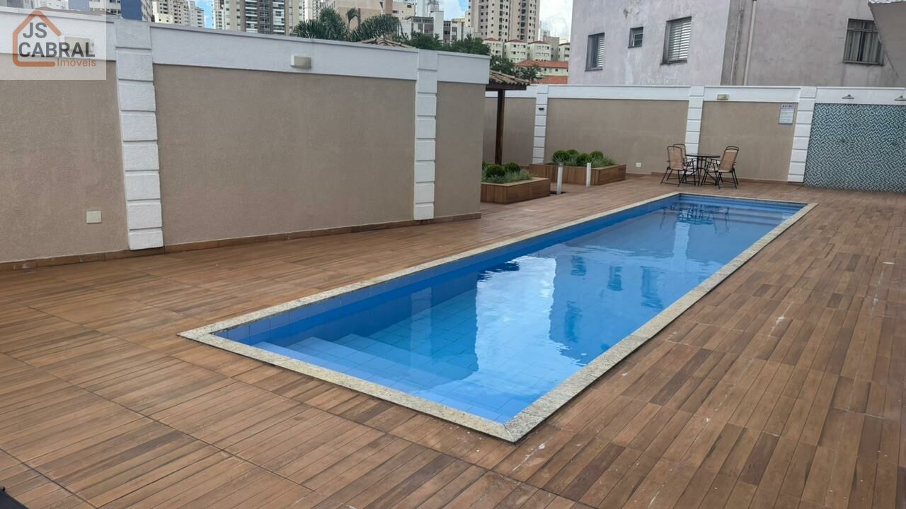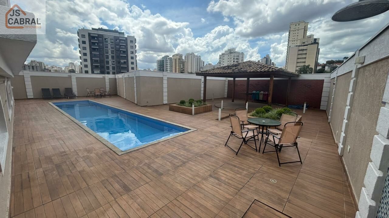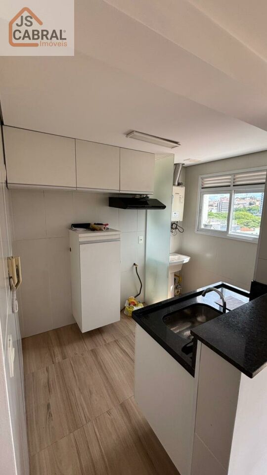 Apartamento com 1 quarto, sala com varanda, cozinha com armários, 1 vaga.